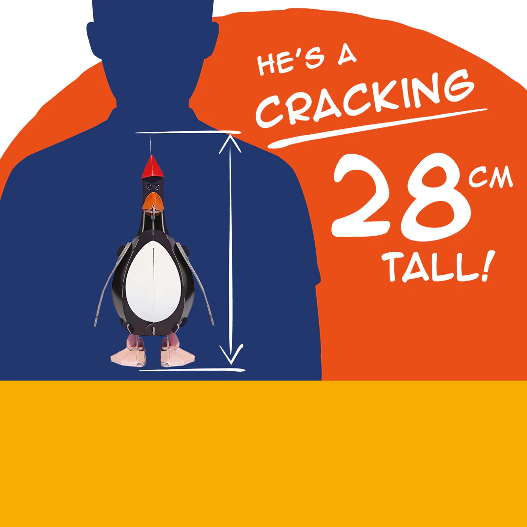 Bring this feathered foe to life by moving the tab on his back to make him blink and walk. With poseable flippers, you can almost believe this evil genius is coming to life!