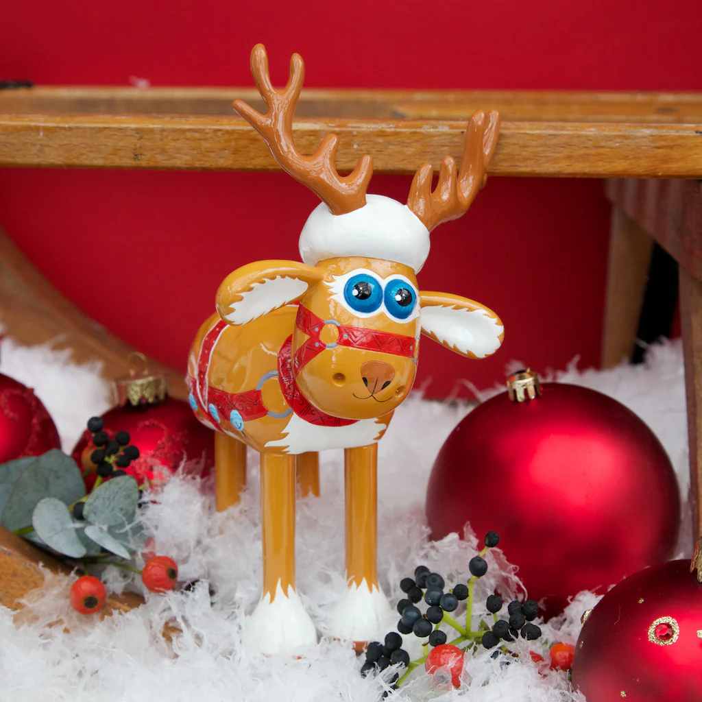 Say hello to Fleece Navidad, the latest addition to Santa’s magical team! Artist Vivi Cuevas has transformed Shaun the Sheep into a friendly reindeer with magnificent antlers, a fluffy coat and a cheerful red harness with bells. And how did Fleece get his name? Well, it’s inspired by the Spanish phrase for Merry Christmas, ‘Feliz Navidad’!