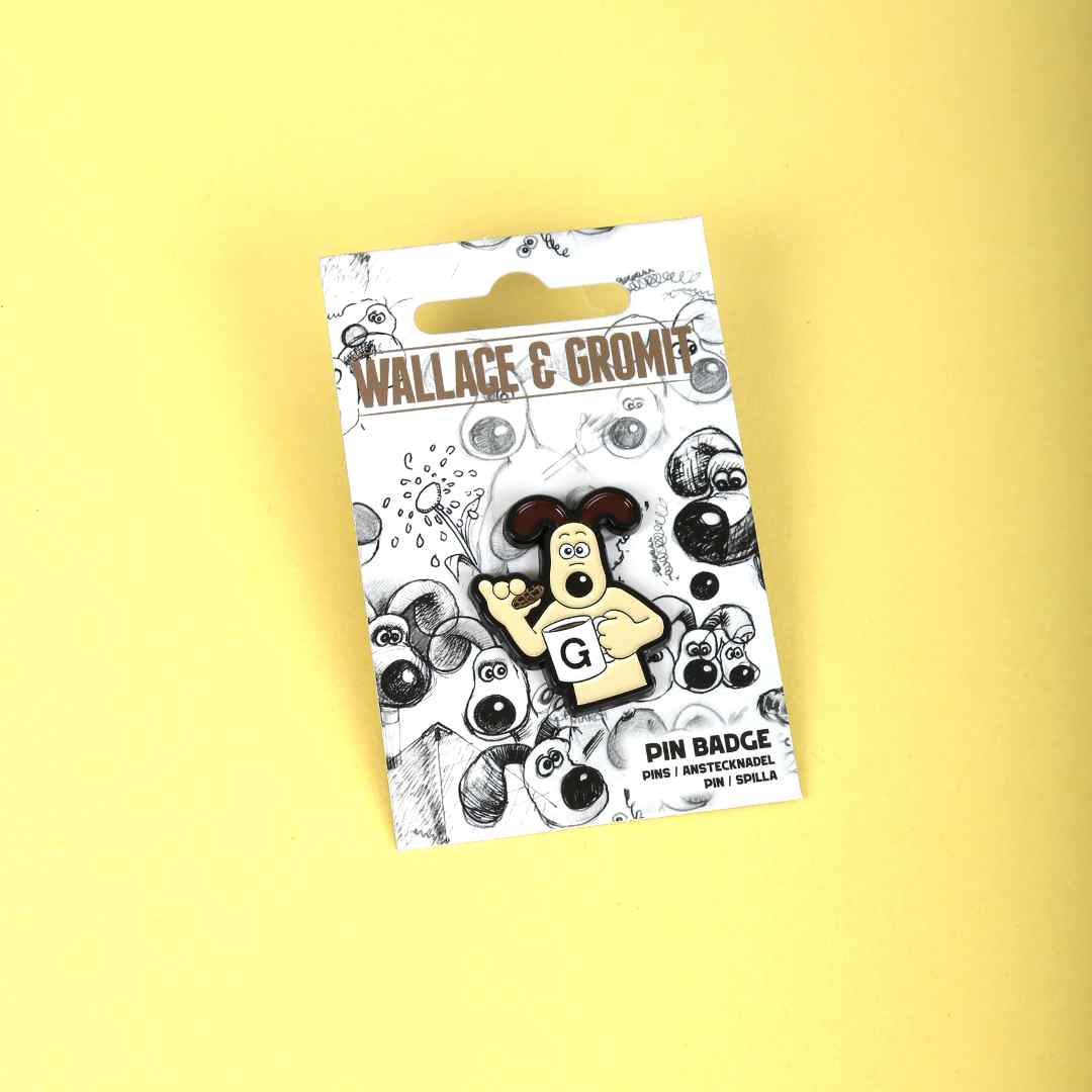 One more pin badge to add to your collection? This cute Gromit is enjoying a cuppa and a biscuit is the perfect cosy companion for your jacket, bag, or collection.