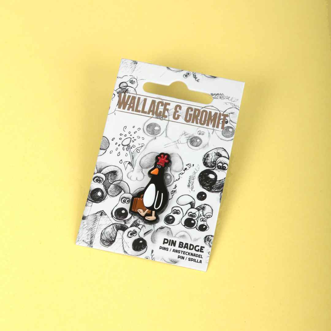Capture the mischief of Wallace and Gromit’s most notorious villain with this charming enamel pin badge. Featuring the classic feathered foe clutching his iconic suitcase from The Wrong Trousers, this collectable brings a touch of animation magic to your jacket, bag, or pin board.