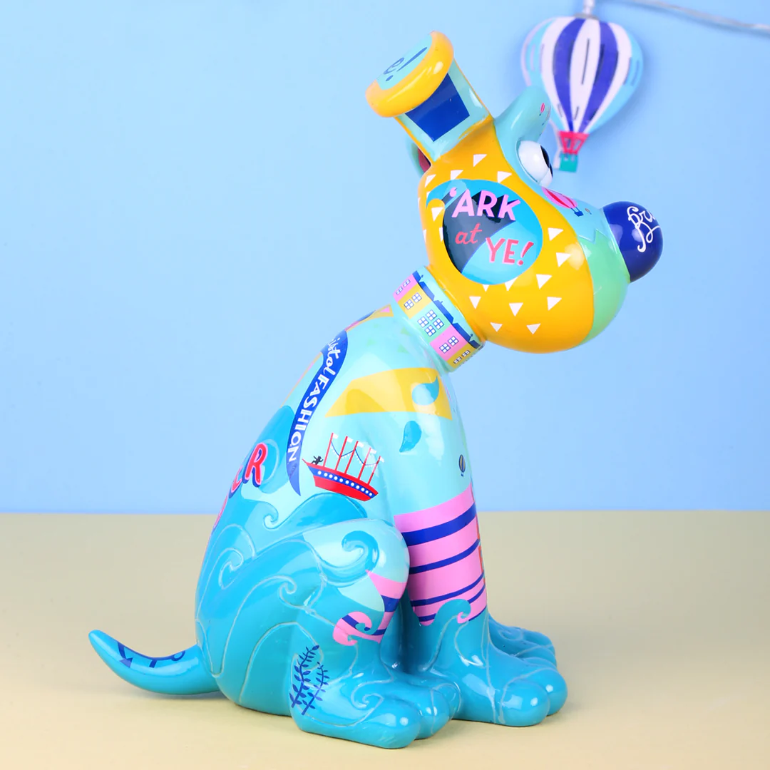 Get your paws on this proud Bristolian Gromit figurine, boldly adorned with his favourite Brizzle slang. Celebrating our beloved home city, 'The Bristol Hound' showcases Bristol's iconic landmarks and buildings through bright and beautiful geometric patterns.