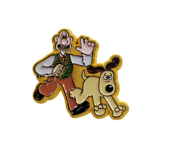 Embrace your love for the dynamic duo with the Wallace & Gromit chasing Gromit enamel pin badge. This classic enamel pin badge features Wallace playfully chasing his loyal companion, Gromit, on his way home for a nice cuppa! A must-have for any fan, this badge will add a touch of fun to your collection.